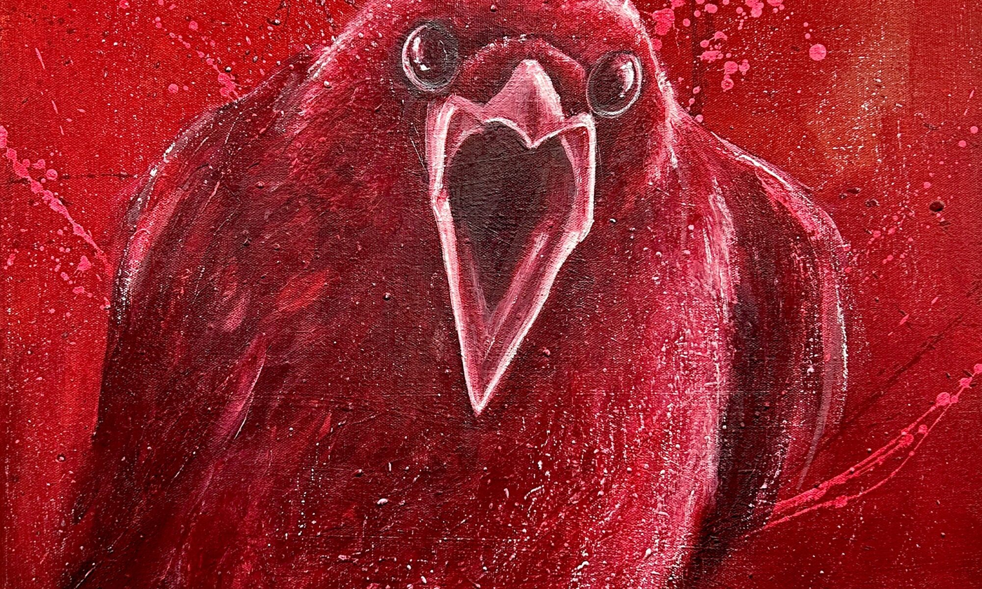 This intense raven is a michromatic shades of crimson. This is the inner about we all need to do. Just let it go feel all the feels.