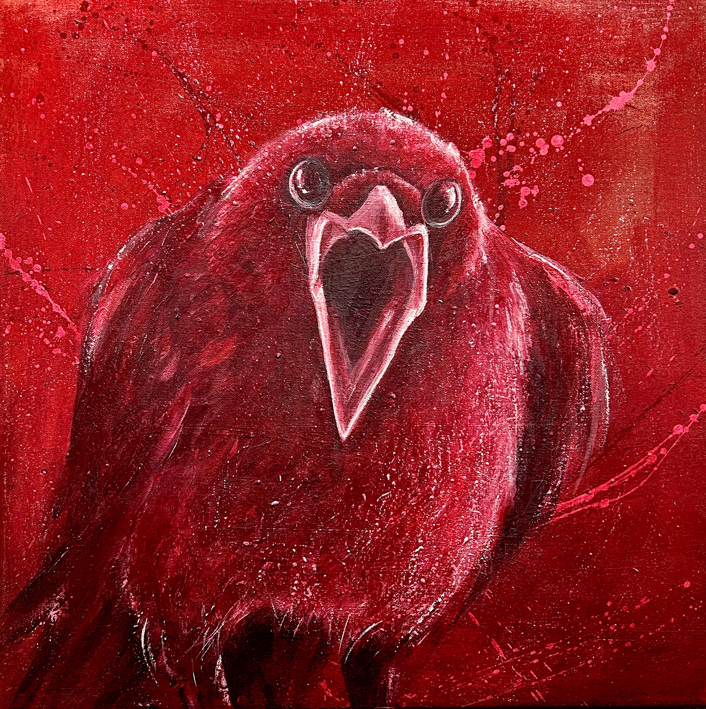 This intense raven is a michromatic shades of crimson. This is the inner about we all need to do. Just let it go feel all the feels.