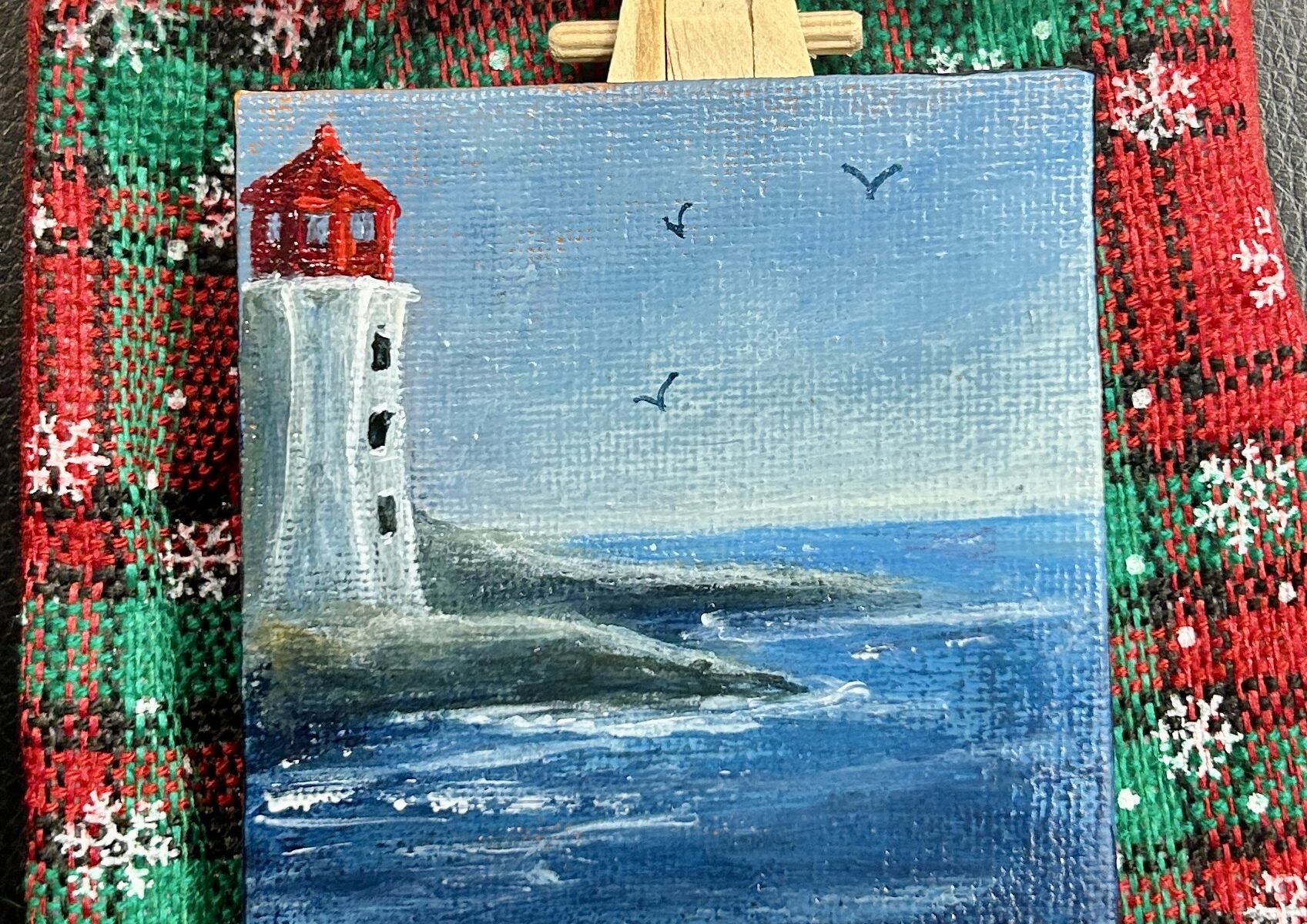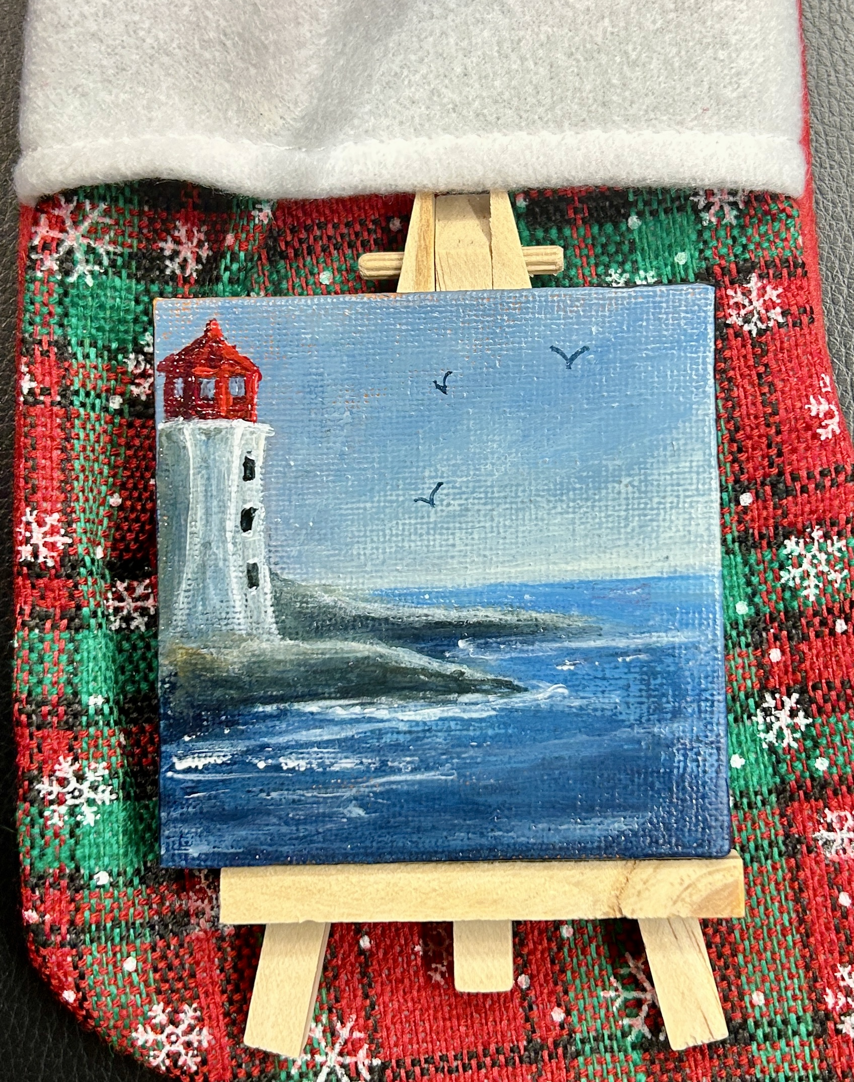 Cute little mini with easel and stocking 🙂