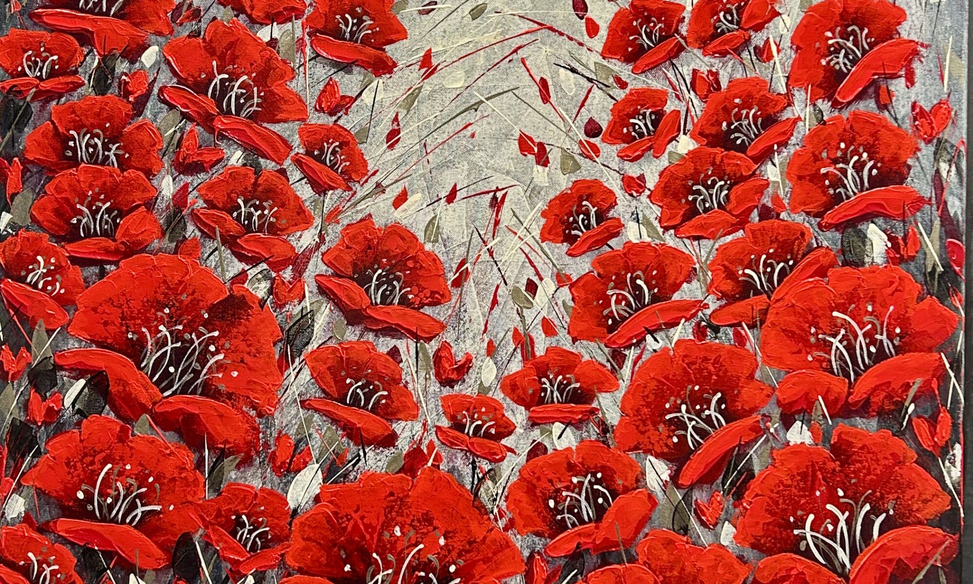 Bright and clean this celebration of red on white honours the many many many people present and past who have given to their family and country and community